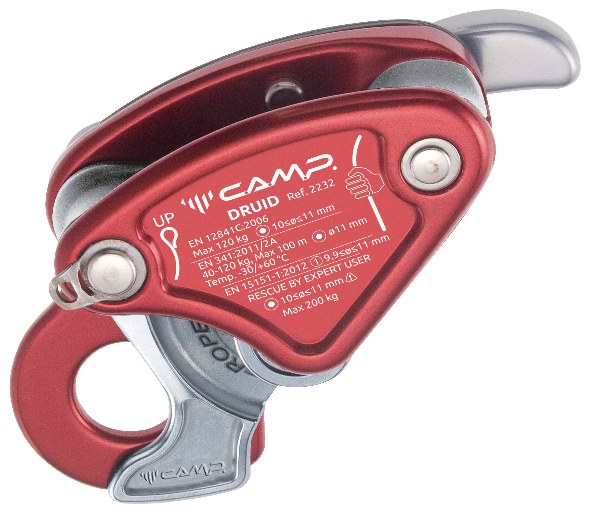 A lightweight, compact auto-braking descender for rope access and rescue designed for semi-static ropes ranging from 10-11 mm. Anti-panic function in the lever re-engages the cam if the handle is pulled too far where it could lead to unsafe descent speeds. The body and lever are made of robust hot-forged aluminum alloy. Mechanical parts are made of precision-cast stainless steel. The internal mechanism and locking cam use a innovative design for smooth action on the rope which prevents rapid wear-and-tear and absorbs energy from small shocks with a slight amount of rope slippage. The fluid action on the rope also allows the Druid to function well for rope ascent. The cam can be de-activated with a trigger to allow quick sliding of the rope in situations with no load or limited load. Steel ring for attaching a keeper cord.